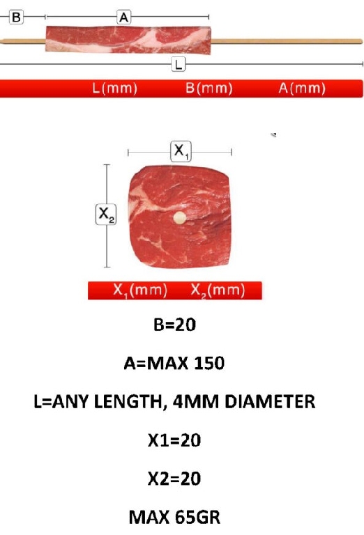 Za pomocą prasy - maszyny do formowania szaszłyków MINI może wykonać w jednej zakładce do 25 szaszłyków o maksymalnej wadze do 65 gramów