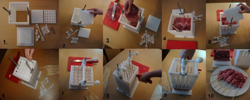 Za pomocą prasy - maszyny do formowania szaszłyków MINI może wykonać w jednej zakładce do 25 szaszłyków o maksymalnej wadze do 65 gramów